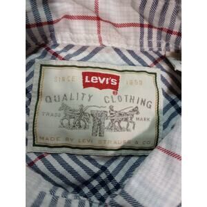Levis Shirt Mens Large Blue Red White Plaid Button Up Short Sleeve Soft Cotton