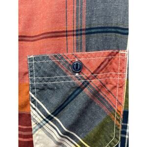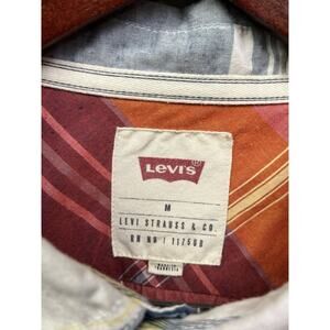 Levis Mens Medium Short Sleeve Western Button Front Shirt Red Blue Plaid Check