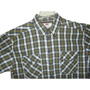 Levis Shirt Mens Size Large Plaid Button-Up Long Sleeve Brown Blue Yellow