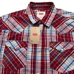 Levi's Shirt Mens Size S Long Sleeve Western Pearl Snap Button Plaid Red NEW