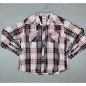 Levi's Shirt Mens Size XXL Pearl Snap Long Sleeve Gray Red Plaid Well Loved