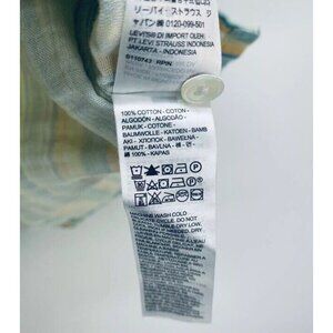 Introducing a stylish Levi's shirt in size M for men. The shirt features a striped pattern in yellow, green, and white with a collared neckline and button-down closure. It has long sleeves and a relaxed fit, making it suitable for various occasions such as travel, weddings, parties, casual outings, formal events, and workwear. The shirt is made of cotton material and is machine washable for easy care. It also includes pockets and is suitable for all seasons, making it a versatile addition to your wardrobe. The shirt is not handmade and is not a vintage piece. It is a regular fit and is perfect for men who want to look stylish and comfortable.