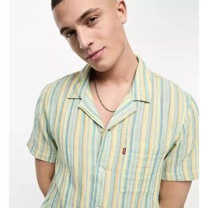 Levi’s Shirt Size M Men’s The Sunset Camp Striped Relaxed Yelow Green White New