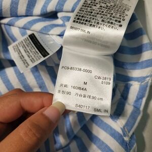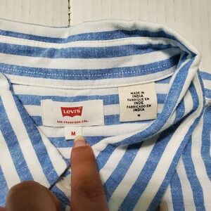 Levis Shirt Womens M Blue White Stripe Button Up Viscose Blend Short Sleeve