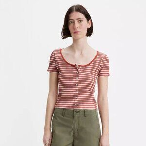 Levi's Short Sleeve Britt Snap Front Top - Size XXL - Striped Casual