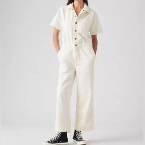 Meet the Short-Sleeve Heritage Jumpsuit. A form-flattering piece with a classic button-down front and a straight leg silhouette.
