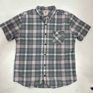 Levi’s Short Sleeve Plaid Button Down Gray XL