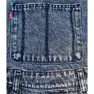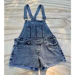 Levi's Shorts Overalls Shortall Bib Denim Distressed Medium Wash Size 14 Reg