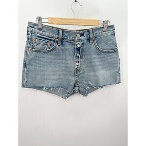 Levi's Shorts Women 28 Blue 501 Jump Start Button Fly Raw Frayed Hem Cotton