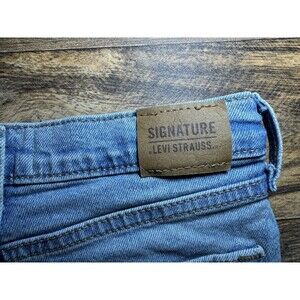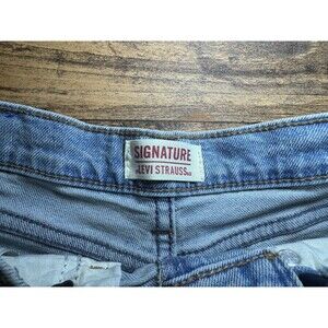 These Signature by Levi Strauss & Co. size 7 Regular jean shorts feature a classic medium wash, cutoff frayed hem, and traditional 5-pocket styling. Made with stretch denim for comfort and a flattering fit. See photos for measurements and details. Great preowned condition.