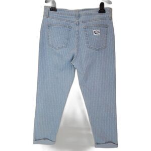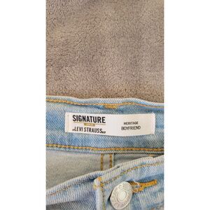 Levi's Signature Boyfriend Striped Heritage Cuffed Jeans. Size 28. Effortlessly cool and undeniably comfortable, the Levi's Signature Boyfriend Striped Heritage Cuffed Jeans are a wardrobe staple. These relaxed-fit jeans feature a classic striped pattern and a cuffed hem for a vintage-inspired look. The soft, stretchy denim ensures all-day comfort, while the boyfriend fit offers a laid-back, effortless style. Perfect for pairing with sneakers, boots, or heels, these jeans are a versatile piece that can be dressed up or down.