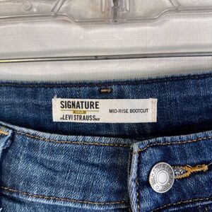 Levis Signature Gold Mid Rise Bootcut Denim Blue Jeans Casual Size 14 Short
