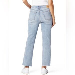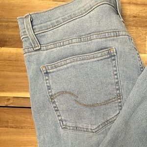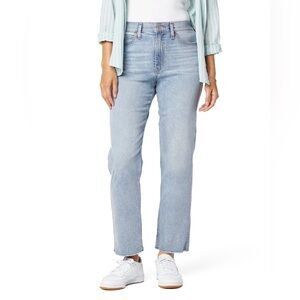 Levis Signature Heritage High Rise Straight Light Blue Denim Jeans Raw Hem Sz 16