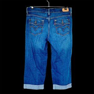 Levis Signature Medium Wash Denim Cuffed Capri Jeans Sz 4 Stretch Cotton Cropped