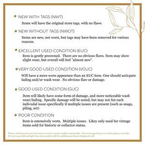 Condition: EUC. No unintentional rips, stains, tears, or holes. Please see photos for best representation of overall condition, as well as flat lay measurements.