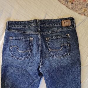 Stylish Levi's boot cut jeans. Classic blue denim. Perfect for casual wear.