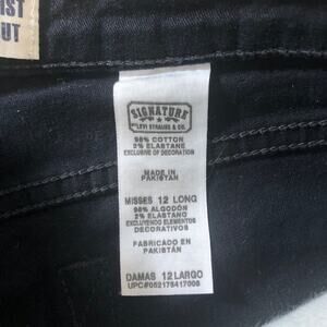 Levi’s Signature black midrise cut off shorts in a size 12. These were a pair of bootcut long jeans that were cut to make shorts. Mid rise with raw hem.