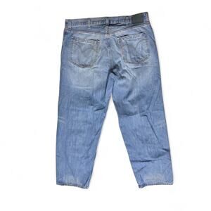 Hip hop skater grunge style light wash faded denim trousers / great pre owned condition , minimal signs of wear / tagged 40x34 , fits 41” , Please check all measurements before purchasing
