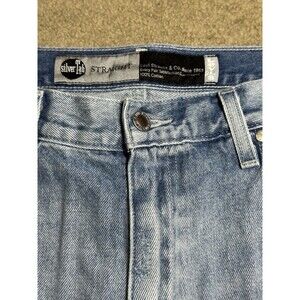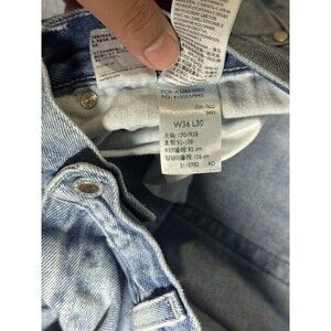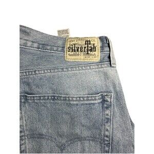 The product is a pair of Levi's SilverTab Light Denim Jeans in Men's size 36. These jeans feature a zip and button closure, a mid-rise fit, a straight leg style, and a 27-inch inseam. They are made of cotton denim with a light wash, and include a 5-pocket design with the Levi's logo accent. Ideal for various seasons, these jeans are part of the Levi's Silvertab product line, known for their hipster, retro, and grunge-inspired aesthetic. Machine washable and in excellent condition, these jeans are perfect for skater and Y2K style enthusiasts.