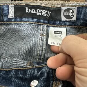 Levis Silvertab Jeans Mens 34x34 Dark Blue Baggy Fit Denim Made In USA Y2K 90s