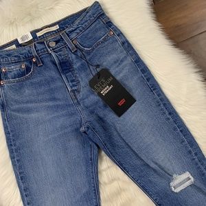 Levi's Women's Size 26 Medium Wash - Jive Tone Distressed Wedgie Straight Crop Denim Jeans, High Rise, Stretch, Button Fly, Five Pockets, 99% Cotton 1% Elastane