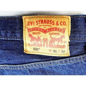 Levi's Size 31X30 Men's 501 Blue Denim Egyptian Cotton 5 Pocket Logo Denim Jeans
