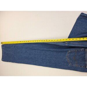 The product is a pair of Levi's Size 31X30 Men's Silver Tab '94 Baggy Blue Cotton Denim Jeans. These jeans feature a zip closure, mid-rise fit, straight leg style, and a 5-pocket design with a coin pocket. Made from dark wash cotton denim, the jeans have a solid blue color with the Levi's logo as an accent. The jeans are machine washable and suitable for all seasons, including winter, spring, summer, and fall. Handmade in Sri Lanka, these Levi's Silver tab jeans offer a regular fit and are a stylish addition to any man's wardrobe.