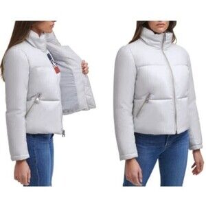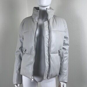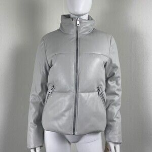 Levi’s Size M Gray Quilted Faux Leather Full Zip Puffer Coat NEW Jacket Boxy