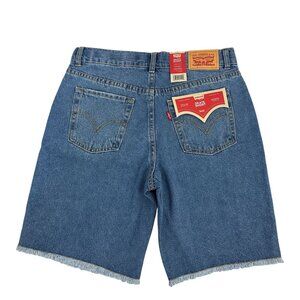 Crafted from high-quality blue denim, these Levi's Skate Shorts feature a playful patchwork design, colorful embroidery, and a frayed hem for a casual look. Designed with a loose fit and a longer inseam, these shorts ensure style and comfort for everyday wear.