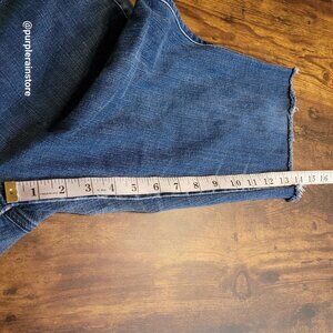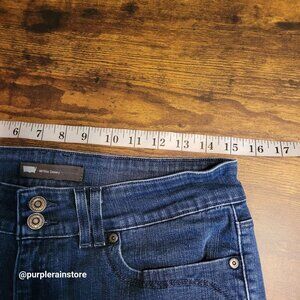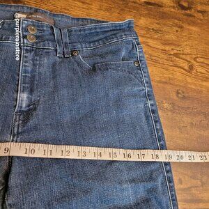 Levi's Skinny Bermuda Shorts Size 12 Mid Rise Cut Off Button Flap Stretch Denim
