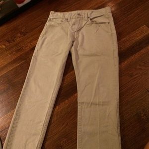 BARELY worn Levi's skinny jeans. Full length, tan with slight distressing on upper right leg.
