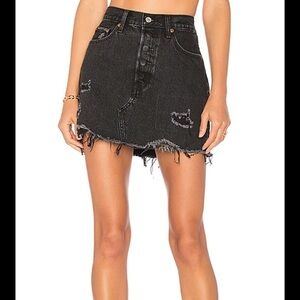 Levi’s Women Size 25 Black Jean denim Skirt Revolve Distressed Cut Off Button Fly B7