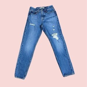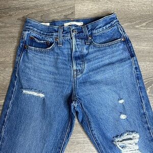 Levi’s Sky High Rise Destructed Wedgie Icon Fit Ankle Straight Leg Jeans 24