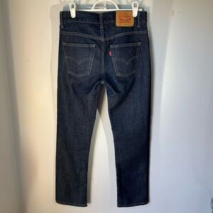 Levi’s Slim 511Big Boy 5 pocket Jeans. NWOT. 511 Slim, Size 14 reg, 27/27. 5 pocket jean Sits low on waist, zip and button closure. Slightly tapered. Dark Wash. Flat lay W 13.5”, L 35”, R 9”, I 27”. #levis #boyslevis #slimfit