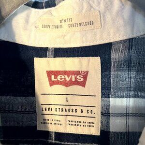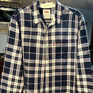 Levi's Slim Fit Blue & White Plaid Linen Blend Long-Sleeve Button-Up SZ Lrg