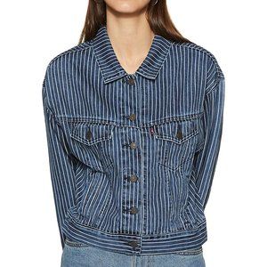 Levi’s Slouch Trucker Jacket Pinstripe Sz XS Jean Denim 1980’s Stranger Things