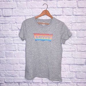Levi's Small S Heather Gray 100% Cotton Rainbow Stripe Logo Graphic Tee T-Shirt