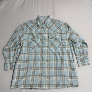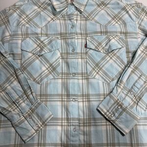 Levi's Soft Flannel Shirt Mens Med Light Blue Plaid Pearl Snap Western Button Up