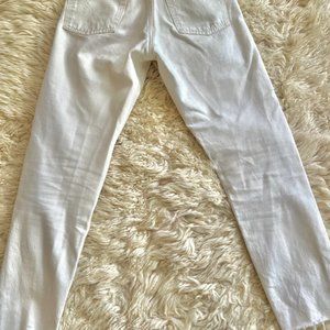 super cute and comfy high-waisted white straight leg jeans. They are a in great condition but sadly don't fit me anymore. The profit made from this sale will go towards the amor del bueno foundation (https://en.amordelbueno.org) which works to end domestic abuse in Mexico through education.