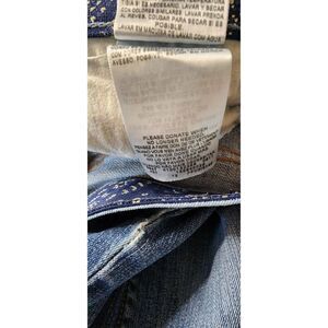 Levi's Straight Leg Women's 8M Blue Jeans with Printed Waist Band. No stains or tears detected throughout the garment, except the bottom leg hems have started to distress slightly due to wear. . See photos for condition and measurements. All measurements taken while laying flat. Double check your measurements against the measurement photos please.
