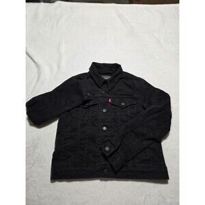 Levis Strauss Denim Jacket Womens Small Petite Black Trucker Button Up Classic