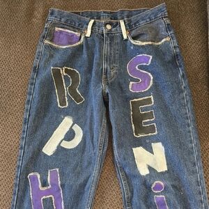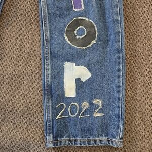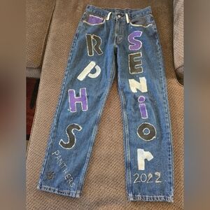 Levi's Strauss Girls Blue Jeans 32×30 Hand Painted Senior Panthers Art To Wear