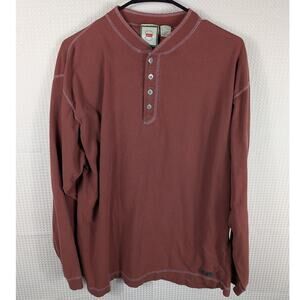 Levis Strauss Mens Medium Henley Shirt Rust Red Long Sleeve Cotton Casual Top