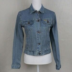 Levi's Strauss Signature Vintage Girl's Junior Five Button Down Long Sleeve Jean Jacket. Light/Medium. Two Button/Flap Chest Pockets. Side Pockets. One Button Cuffs. Two Button Tabs On Back Waistband. 99% Cotton, 1% Spandex. Mark On Front Per Picture. Please See Measurements Before Purchasing. Measurements approx. Flat Lay. Pit to Pit: 19, Sleeve: 24, Length: 20.5
