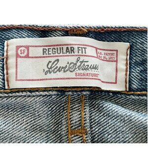 Levi Strauss Signature Regular Fit men's jeans. Jeans are straight leg done in a medium wash. They're made of 100% cotton. Jeans are labeled a man's size 40 x 30 but actual measurements show they’re 38 x 29.