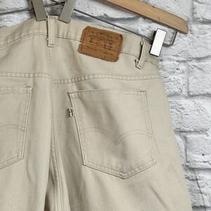 Levis Strauss Straight Leg Denim 523 Jeans Pants Beige 38x32 White Tab Made USA