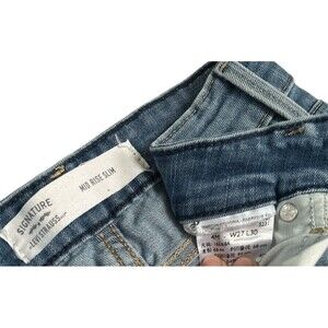 The product is a pair of Levis Strauss Womens Mid Rise Slim Stretch Light Wash Casual Jeans in size 4M. These jeans are made by Signature by Levi Strauss & Co. and feature a slim fit with a light wash fabric. They are designed specifically for women and offer a stretchy and comfortable feel. The size 4M indicates a regular size fit for women, while the blue color adds a classic touch to the overall style. These jeans are perfect for casual wear and provide a stylish and flattering look for the wearer.