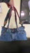 This is a denim purse made from a pair of Levi Strauss denim jeans. It has tags from jeans which makes it so cute and a zipper closure. Unique and super cute in excellent condition