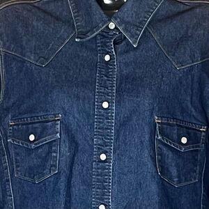 Levi’s Strauss Western Dark Denim Snap Button Down Embroidered Back Collared Shi