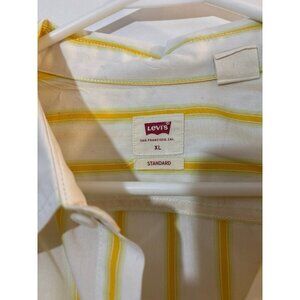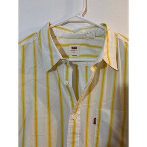 Levi’s Short Sleeve Button Down with yellow and green stripes. Smoke free, pet friendly home. Measurements in pics size XL. All buttons attached. No issues. Has a vintage look to it but I don’t know the age.